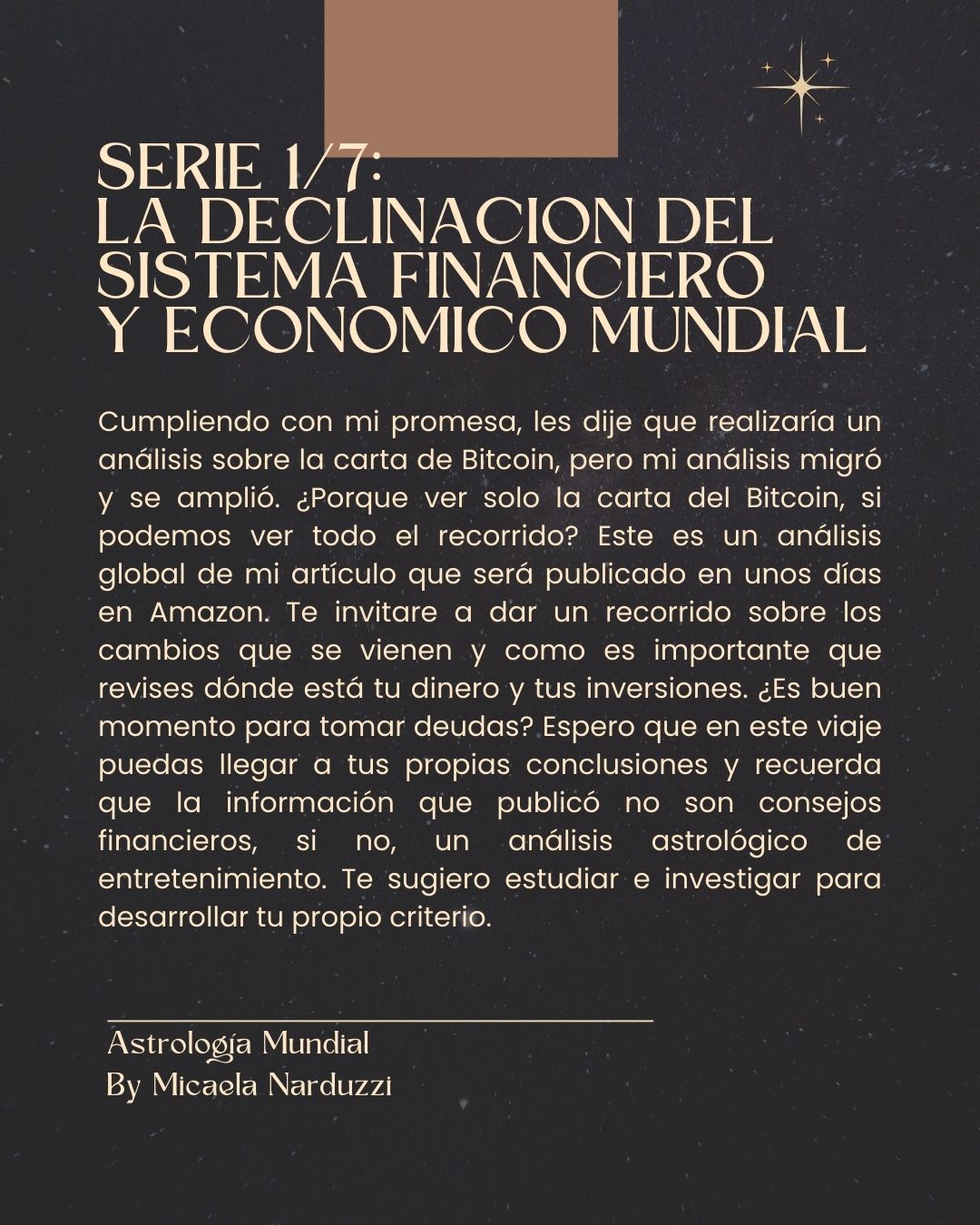 Cumpliendo con mi promesa, les dije que realizaría un análisis sobre la carta de Bitcoin, pero mi análisis migró y se amplió. ¿Porque ver solo la carta del Bitcoin, si podemos ver todo el recorrido? Este es un análisis global de mi artículo que será publicado en unos días en Amazon. Te invitare a dar un recorrido sobre los cambios que se vienen y como es importante que revises dónde está tu dinero y tus inversiones. ¿Es buen momento para tomar deudas? Espero que en este viaje puedas llegar a tus propias conclusiones y recuerda que la información que publicó no son consejos financieros, si no, un análisis astrológico de entretenimiento. Te sugiero estudiar e investigar para desarrollar tu propio criterio.